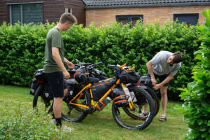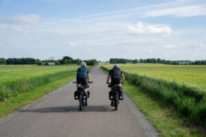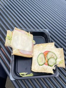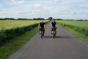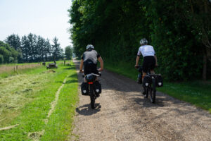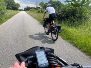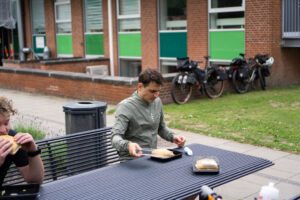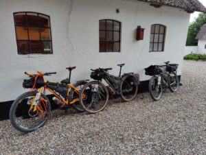 Ikke lang tid efter afgang kunne vi se, at vores første etape ville blive noget hurtigere, end vi havde regnet med. Dels var vinden nogenlunde god ved os og dels var underlaget noget mildere end forventet. Vi havde nogle gode lange asfaltstykker med vekslende grus- og skovstier. Turen gik først til Vorbasse, så Vejen og dernæst Vojens, hvor vi gjorde et kort stop for at få aftensmad. Der var stemning for spaghetti carbonara, men det blev en hurtigere løsning i Kvickly Vojens. Vi kan sige så meget, at husets sandwich ikke er at anbefale. Men det var mad, og nogle gange er det alt, der skal til, for at kunne cykle videre.