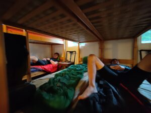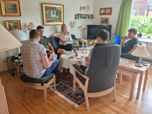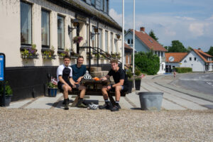 Da vi satte os på cyklerne og havde kørt ca. 100 km – med en gennemsnitsfart på 21 km/t – besluttede vi os for at forkæle os selv lidt over natten. Vejrudsigten siger nemlig regn, regn og atter regn i morgen. I stedet for at døje med at pakke lejren sammen i regnvejr benyttede vi os af et hyggeligt herberg lige uden for Rødekro. Her har vi toiletter, bad, madrasser og ikke mindst øl i lange baner. Der bliver derfor ladet godt og grundigt op til turen i morgen mod Schleswig i regnvejr i lårtykke stråler. Vi trøster os ved at vejret nok skal blive bedre på vejen mod syd.