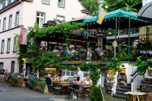 Jeg ramte så Cochem til aftenstid, hvor der skulle spises samt lades lidt. Værste cappuccino so far. Ifølge Nicolai bliver det ikke bedre. Tænkte at køre ud i skoven og sætte camp, men en lang dag træk i den modsatte retning, så jeg ligger nu på en autocamper plads – uden at have betalt 😮