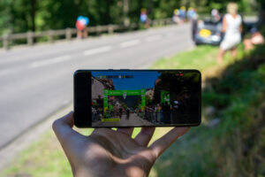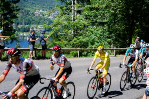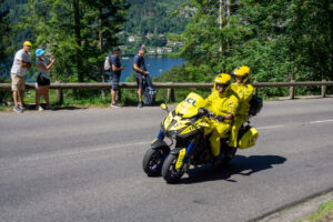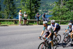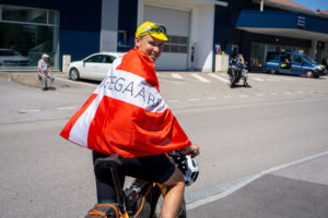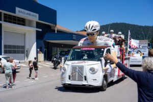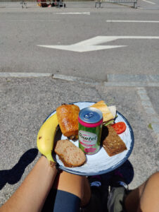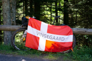 Da jeg kom frem diskede Karina op med en klasse frokost og den helt store karavane kom susende forbi. Efter karavanen valgte jeg at cykle lidt op af stigningen med et dansk “Vingegaard” flag på ryggen lånt af Karina. Fed oplevelse at blive heppet op af stigningen!