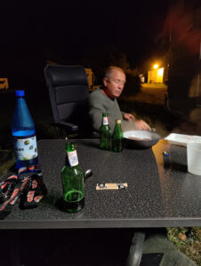 Da jeg så kom frem til campingpladsen, skulle jeg heldigvis ikke tænke på mad, og vi fik en late night dinner kl. 23. Så var det ellers bare godnat inden jeg sov over bordet.