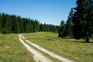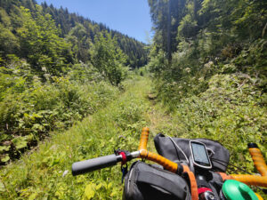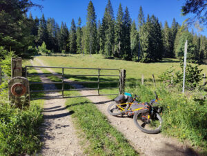 Inde i bjergene var der fuld gang i marker med køer, og jeg skulle igennem en masse bomme. Nogen luksus med håndtag andre var lavet af pigtråd, hvor der var lavet et lille hul ved siden af til gående. Dog lige smalt nok til et loadet svin.