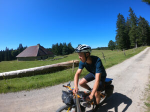 I byen Pontarlier fik jeg købt en ny gas-flaske og loadet op på mad. Cyklede lidt videre og holdte frokostpause inden jeg bevægede mig ind i de schweiziske bjerge.