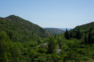 Ruten fortsætte med at gå op og ned. Efter 60 km stoppede det, og de næste 40 km ind til Beziers, hvor jeg holdte siesta, var flade på grusveje mellem vinmarker.