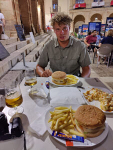 Til aften fik Kasper og jeg en øl på torvet mens Jespers pizza blev bikset sammen. Efter den blev leveret til Jesper på værelset, så rykkede vi over til restauranten ved siden af og fik en burger, patatas bravas og et par øl. Mega hyggeligt torv og en rigtig god dag sammen igen.