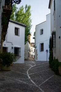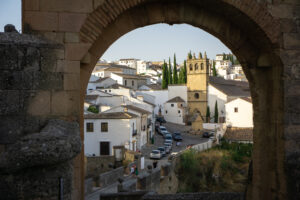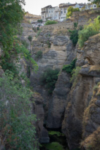 Vi kom ind til storbyen Ronda, hvor vi valgte at splitte. De to andre ville gerne på hotel, og jeg havde egentlig tænkt mig at cykle lidt videre ud af byen. Jeg valgte at køre et hurtigt supermarked-måltid som jeg ville tage med ind til torvet og spise, hvor jeg så ville have en kop kaffe bagefter. Det skulle dog vise sig at gå anderledes. Efter jeg havde købt ind og var kørt 10 min ind mod centrum med posen på styret, fandt jeg ud af at jeg havde glemt min telefon ved supermarkedet – kritisk! Så hurtigt tilbage og så var den der heldigvis stadig – vigtigt! Kan ikke overleve uden Google Maps.
