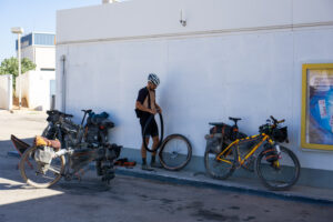 Jesper holdte heller ikke hele vejen uden at punktere, og måtte ind i skyggen og få skiftet slange. Svinet har stadig ikke punkteret, men den kører tubeless og ikke sådan noget gammeldags dæk og slange, så den skal nok holde 😎