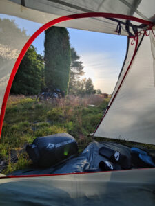En smuk morgen på heden – der var afgang kl. 9.30. Hvor vi havde forventet, at turen ville fortsætte gennem skoven, gik den i stedet gennem et stort åbent hedeområde, der bugtede sig gennem landskabet.